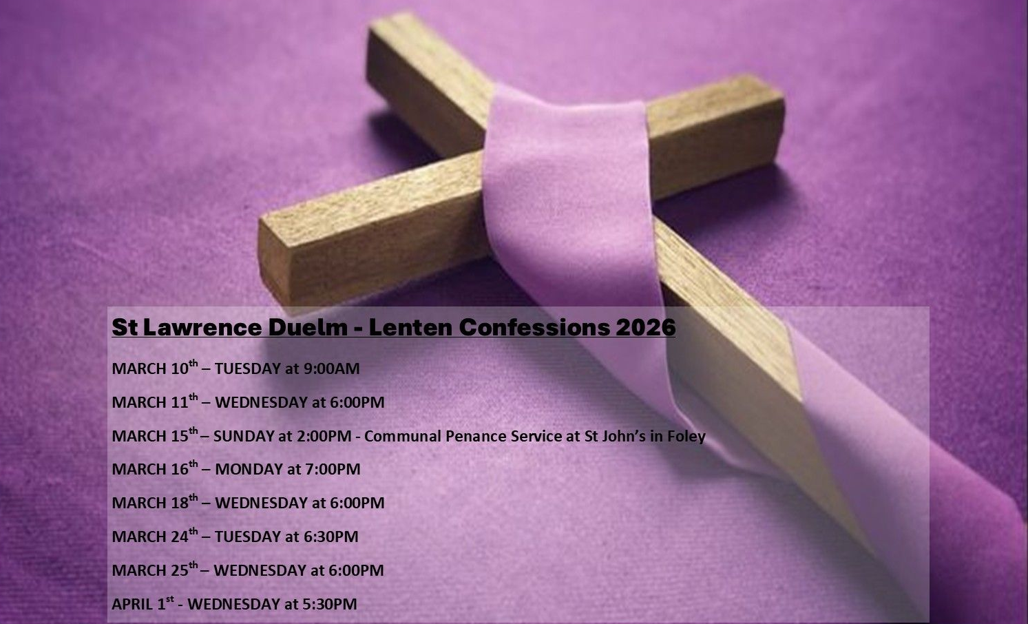 MARCH 15th - SUNDAY at 2:00PM - Communal Penance Service at St John’s in Foley